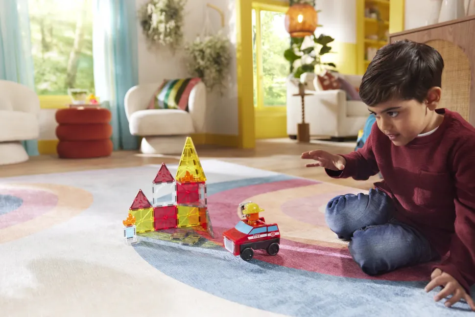 ¡Embárcate en emocionantes misiones de extinción de incendios con MAGNA-TILES Fire Rescue! Envía el coche y la figura del jefe de bomberos a la acción a toda velocidad con el chasis Pullback. Mejora la acción con baldosas de fuego realistas para derribar y escaleras para subir, llegando a cada incendio en el último momento. Diseñado para despertar la creatividad y fomentar el juego imaginativo, MAGNA-TILES Fire Rescue complementa el set Fire Station para operaciones de rescate aún más dramáticas. Juntos, los sets Fire Rescue y Fire Station convierten tu ciudad MAGNA-TILES en un centro de trabajo en equipo, emoción y heroísmo. ¿Quién está listo para responder a la llamada y salvar el día?
