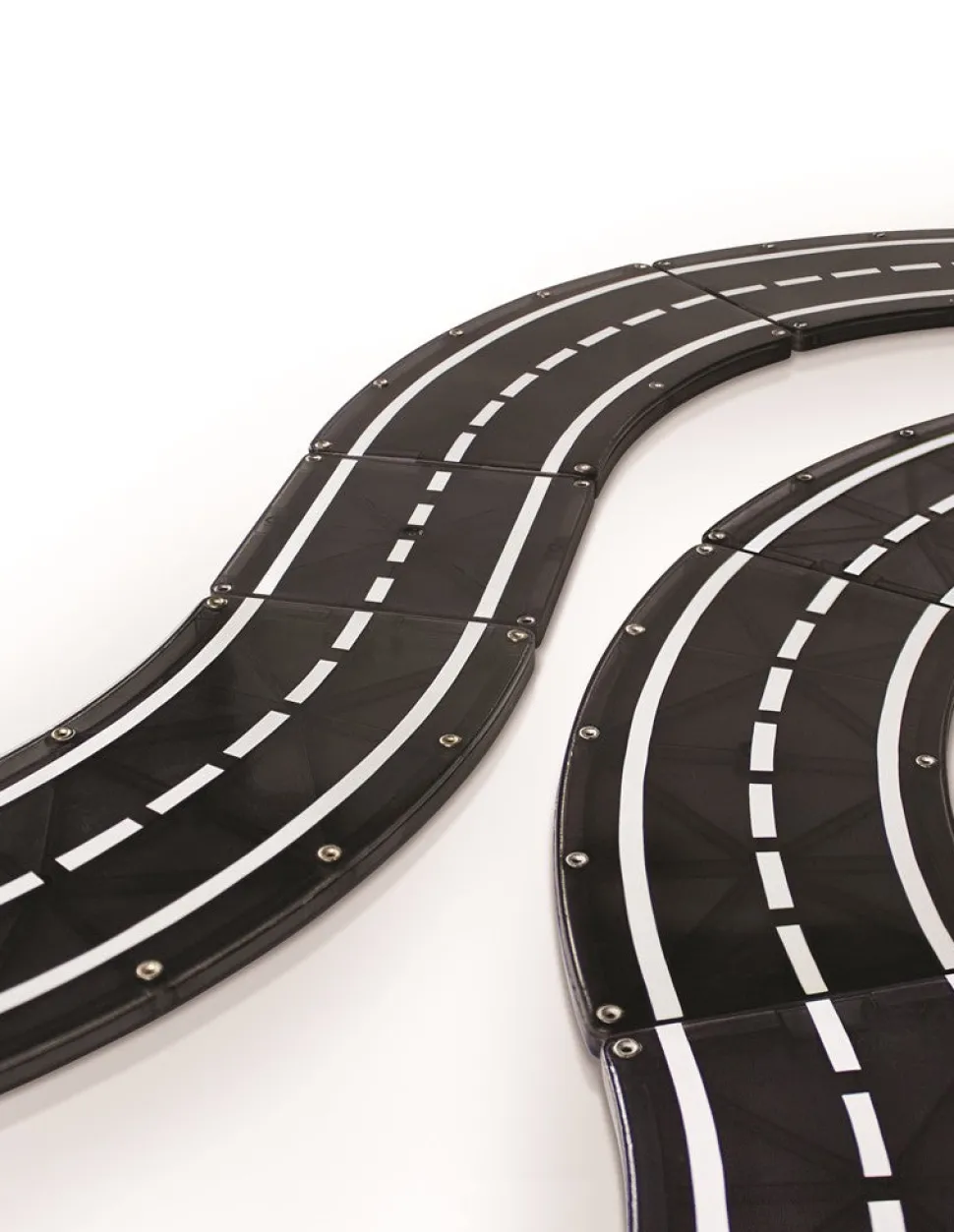 Incluye todas las piezas que necesitas para completar un círculo perfecto (8 Curvas) o una pista de carreras ovalada (8 Curvas + 4 Cuadradas).