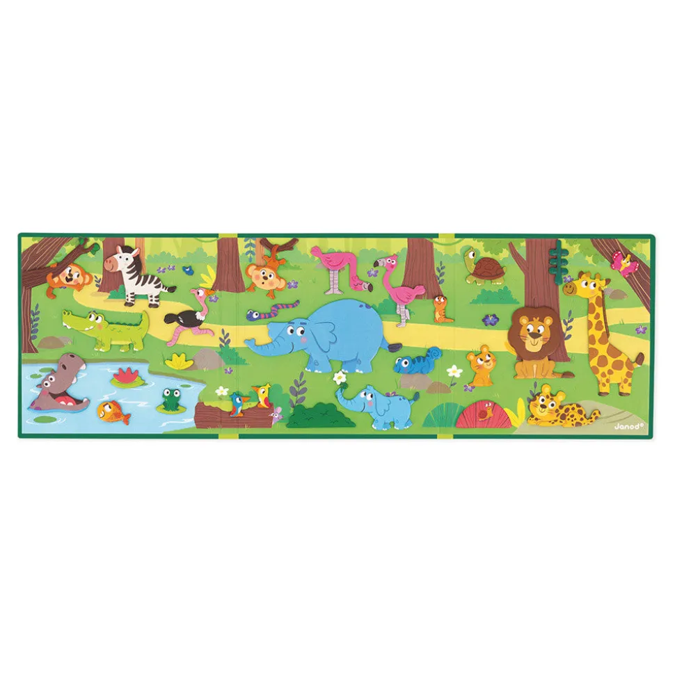 Este juego de temática animal consta de 30 imanes y un tablero ilustrado en colores vivos. Al crear sus propias historias, los niños desarrollan la imaginación, así como su capacidad para resolver problemas y su comprensión del mundo. León, elefante, mono, suricata e incluso piraña: todos esperan al niño para vivir grandes momentos. Cada día será una nueva aventura en la majestuosa naturaleza de África. ¡Además el decorado magnético está pensado para compartir!