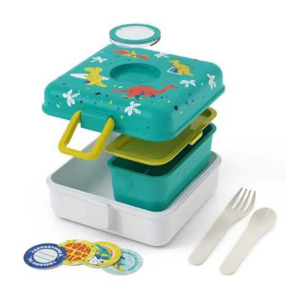¡La lunch box niños Snacky está llena de sorpresas! Debajo de la tapa se esconden un tenedor y una cuchara para que puedas comer como un adulto. Incluso hay una cajita extraíble con tapa, ¡para que puedas separar la comida o añadir pequeños extras!