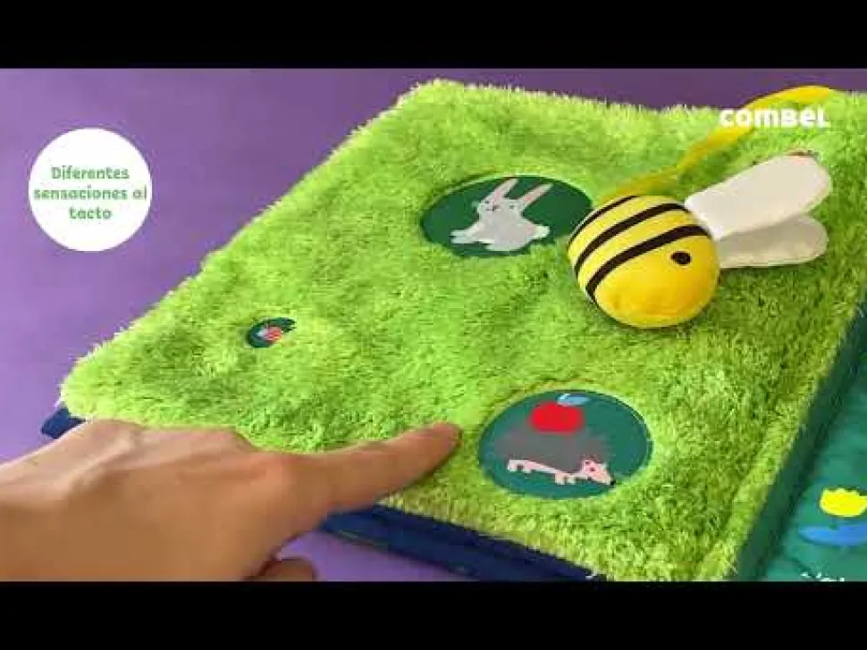 El adulto pasea la abeja de peluche por las escenas de distintos paisajes (flores, un prado, el campo, el estanque). ¡El bebé sale a la aventura junto con la pequeña abeja! Al terminar el viaje, el bebé y la abejita liberarán al pez de la red. ¡Bravo! Un libro de tela con texturas de varios materiales, solapas y un pop-up, que ofrecerán distintas sensaciones y estímulos visuales y auditivos.