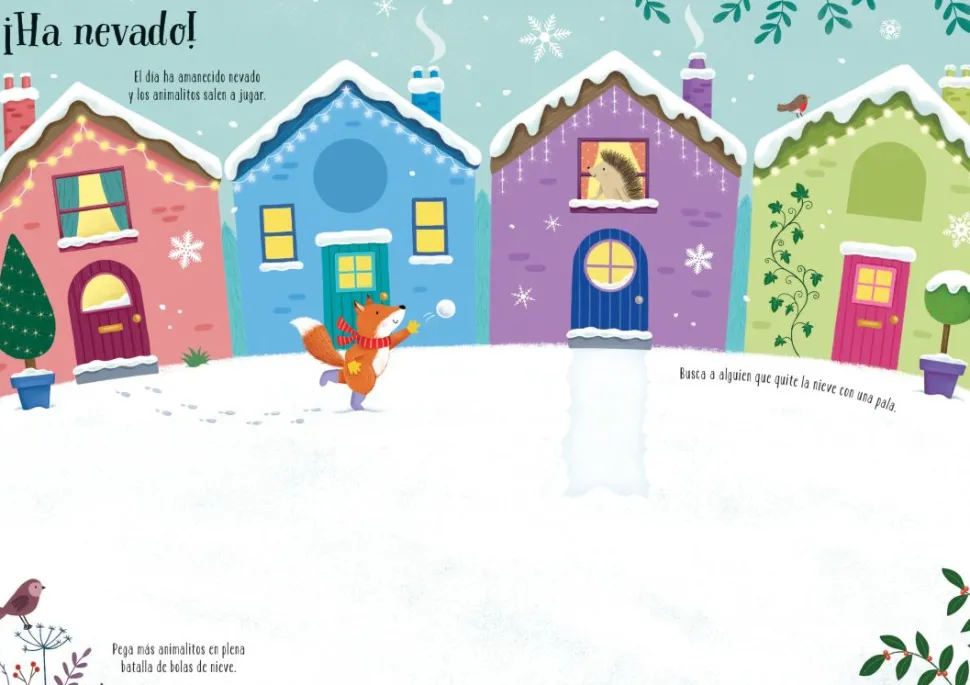 Con una atractiva cubierta con detalles plateados y pegatinas …brillantes…Una forma divertida e interactiva para desarrollar vocabulario y …familiarizarse con todo lo relacionado al invierno.