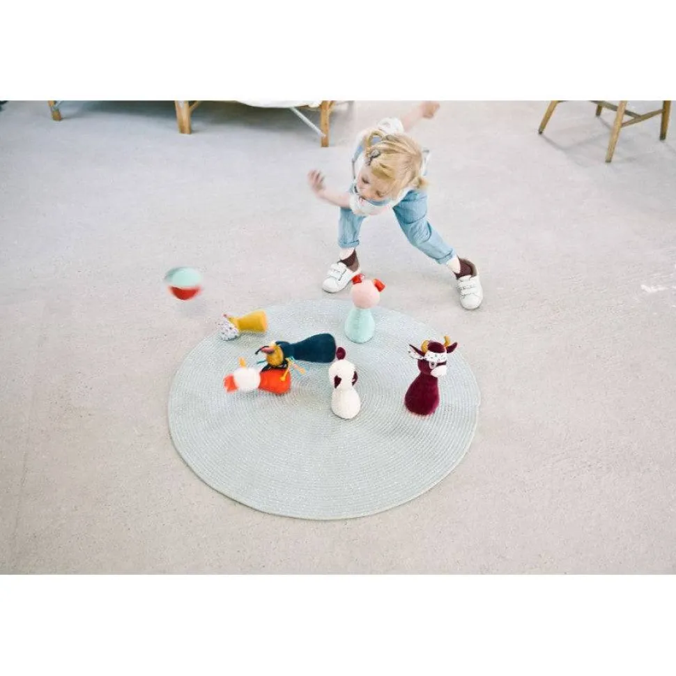 ¡Derríbalos todos de una sola vez! Estos clásicos bolos de muñecos de peluche inspirados en la granja mejoran su coordinación entre la vista y las manos, así como su manejo de la pelota.