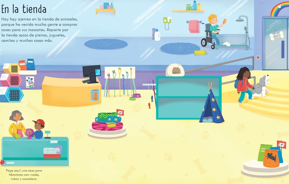 Además de fabulosas ilustraciones, cada página contiene textos sencillos que ayudan a los pequeños a mejorar su vocabulario mientras juegan. Las pegatinas son muy fáciles de pegar y despegar y pueden guardarse en la contracubierta desplegable entre cada uso.