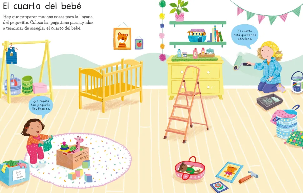 Un libro de pegatinas sobre la experiencia de traer un nuevo bebé a la familia en todas sus etapas. Más de 180 pegatinas para que los niños puedan ayudar a decorar la habitación del bebé, reunir todas las cosas que necesitará, visitar el hospital y ayudar a la hora de acostarlo. Un magnífico libro para preparar a los niños a recibir a un nuevo hermanito o hermanita..