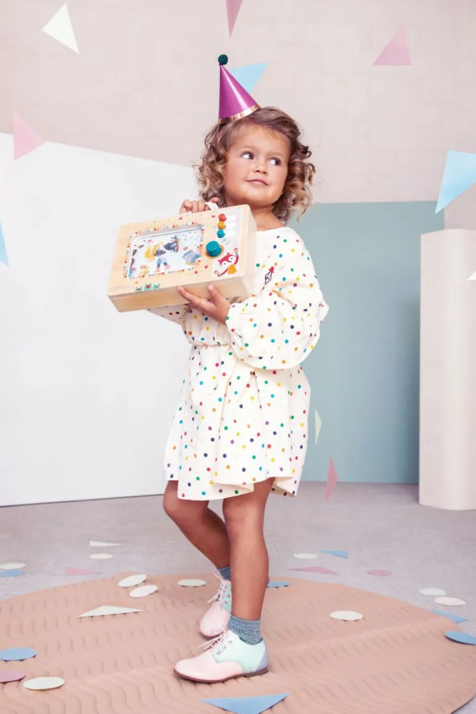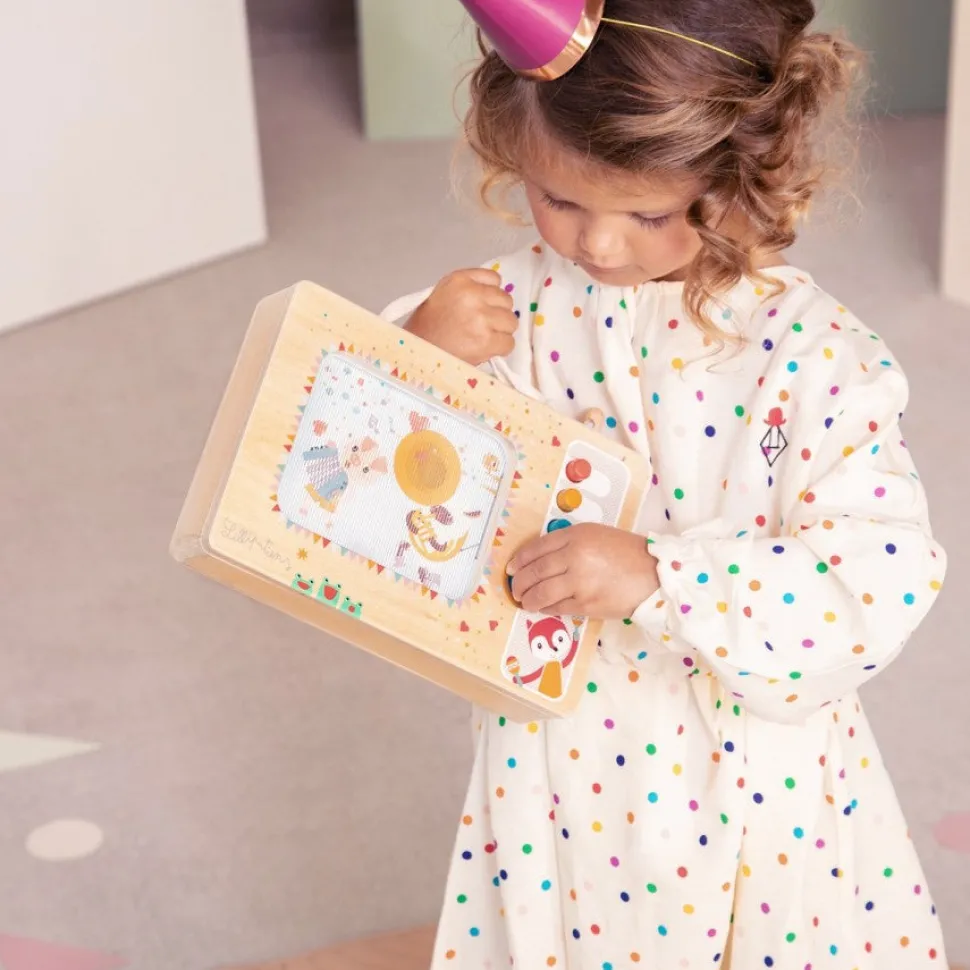 Un pequeño giro de botón en la caja de música y la orquesta se pone en marcha y entona una alegre canción. Gracias a su asa, podrás llevar contigo a todas partes esta caja de música magníficamente ilustrada.