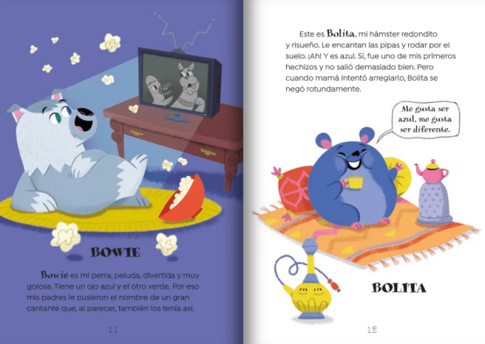 Mía vive en una casa extraña: su padre es un brujo despistado; su madre, una bruja poderosa y musical. Sus mascotas son un gato, un perro y un hámster azul que hablan. ¡Ah, y una araña que teje con su seda unas redes espectaculares! Pero de eso no saben nada sus nuevos vecinos, los Casacuadrada, que son la personificación del orden y la limpieza. ¡Cómo se sorprenderá Lía, la más pequeña de la familia, cuando entre en el mundo de Mía y descubra la verdadera magia!