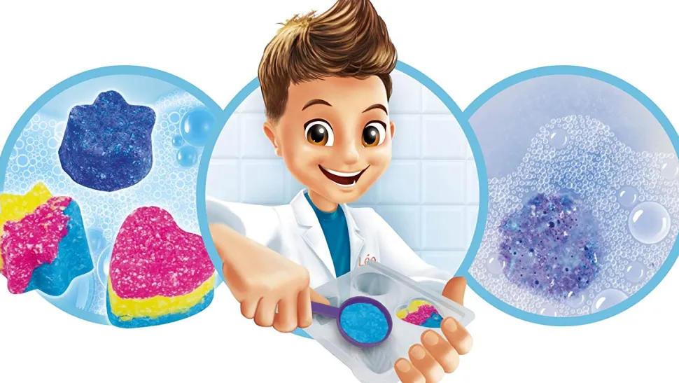 Un kit con que hacer bolas para baño de cualquier color; una vez en el agua, las bolas producen burbujas y dan color al agua del baño