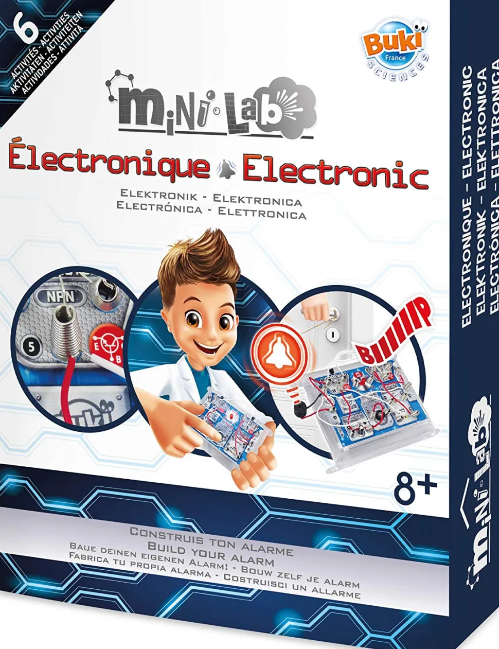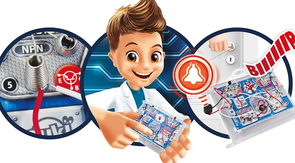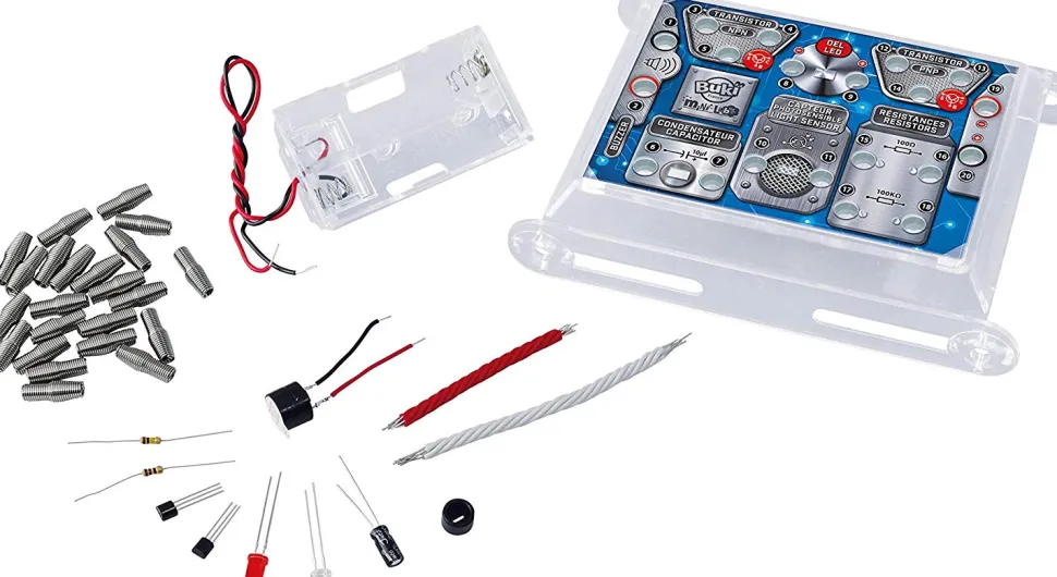 Incluye componentes eléctricos reales y un folleto ilustrado en color describiendo las distintas actividades