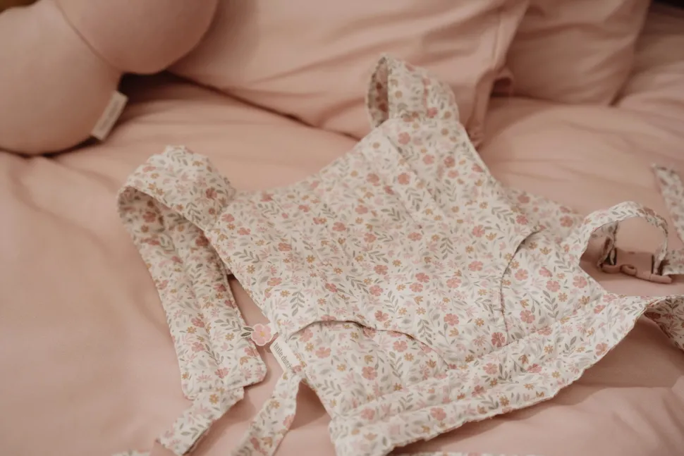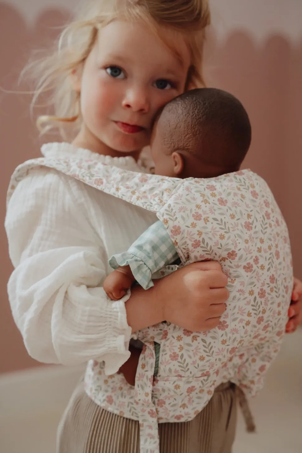 Embárcate en una aventura con este cómodo portamuñecas y lleva a tu bebé a todas partes. Las correas de hombro ajustables y acolchadas y el resistente cinturón lumbar garantizan que tu muñeca esté sentada de forma segura y cómoda. Lleva a tu muñeca cerca de ti o mirando hacia delante, según tus preferencias. Diseñado con el suave y dulce estampado Soft Flowers para un look elegante. Ideal para juegos de rol e imitar el cuidado de bebés reales, manteniendo las manos libres.