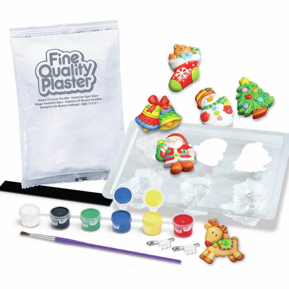 Los peques podrán crear sus propios imanes o pines de Navidad, moldeando el yeso y después pintándolo con el pincel. ¡Aportarán un toque Navideño a cualquier hogar!
