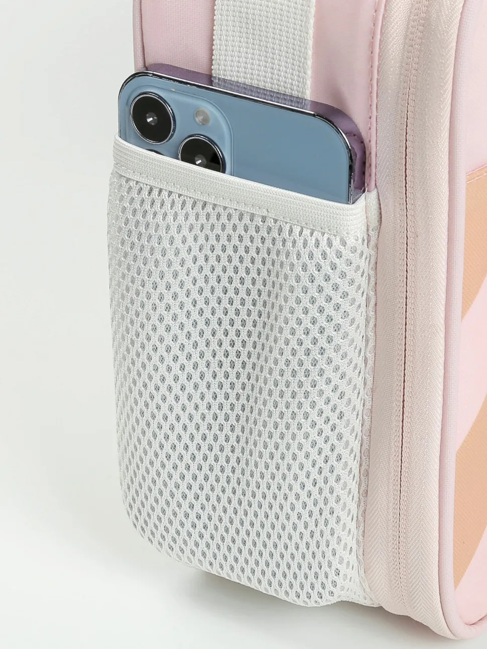 - Bolsillito de malla lateral exterior ajustable para botellas