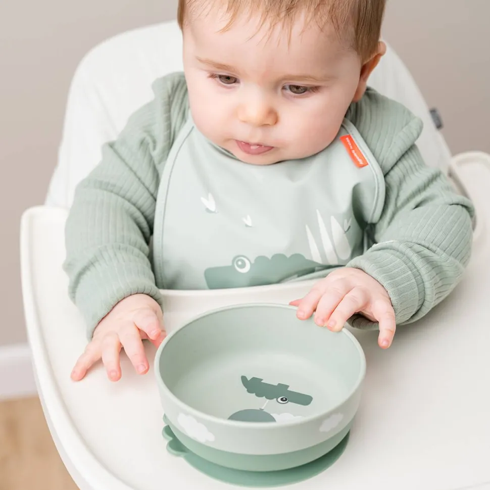 Pack de 2 baberos con bolsillo recogemigas. 100% polyester revestido con PU.
