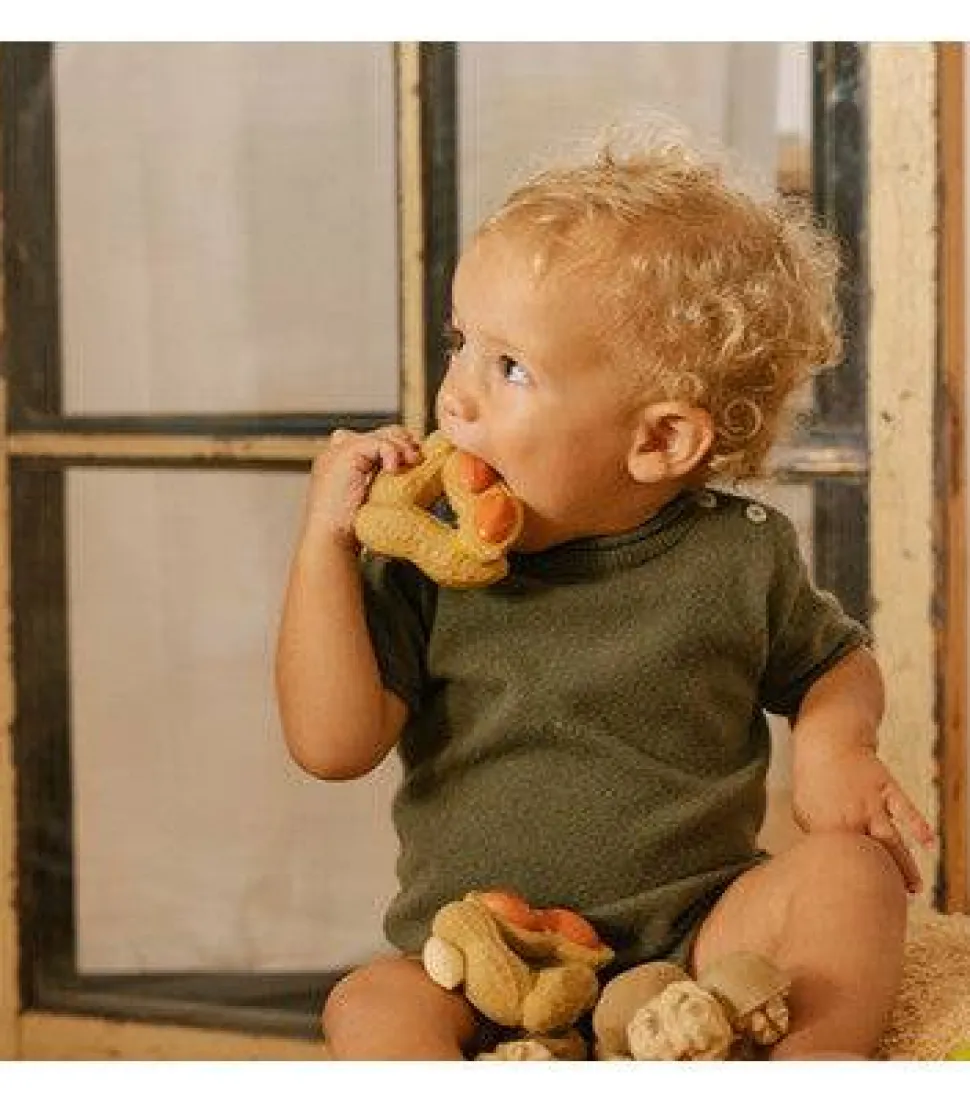 Paco the Peanut es un mordedor, juguete de baño y juguete de juego sensorial para bebés que estimula sus sentidos. ¡Su forma circular es perfecta para que los más pequeños lo puedan coger y llevar a todas partes mientras se habitúan a hábitos saludables! Sus texturas realistas son perfectas para aliviar las molestias durante la dentición.