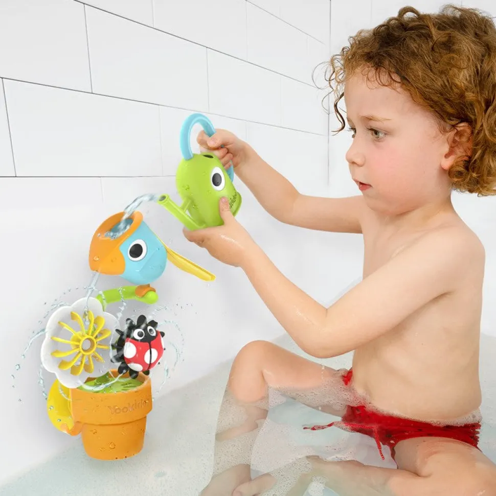 Pon agua dentro del pajarito azul, el pajarito picará hacia adelante regando la flor y de la maceta saldrá una mariquita.