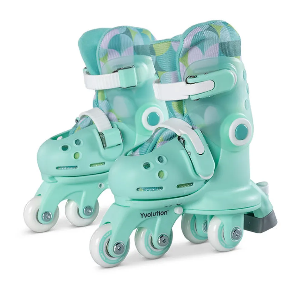 Los patines Yvolution Twista son patines de ruedas para niños pequeños. Ajustable hasta en 4 tallas con una simple pulsación, te será fácil ponértelas y descubrir las primeras sensaciones de deslizamiento. Las ruedas traseras modulares en línea o en paralelo evolucionan sin herramientas y ofrecen una estabilidad adaptada al progreso del niño. Lleva un mecanismo evolutivo para cambiar de 2 ruedas laterales a ruedas en línea sin herramientas.