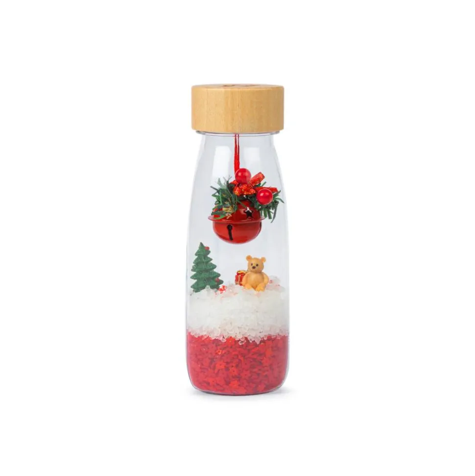 Ho, ho, ho!!! ¿Oyes el tintineo del cascabel? Es el sonido que nos recuerda que con Petit Boum es siempre Navidad. Tiempo de felicidad, de mejillas sonrojadas y de jugar en la nieve hasta congelarse la nariz. Con esta nueva Sound Bottle edición limitada, teñimos todo de blanco, rojo y verde y nos preparamos para compartir los regalos en torno al árbol.