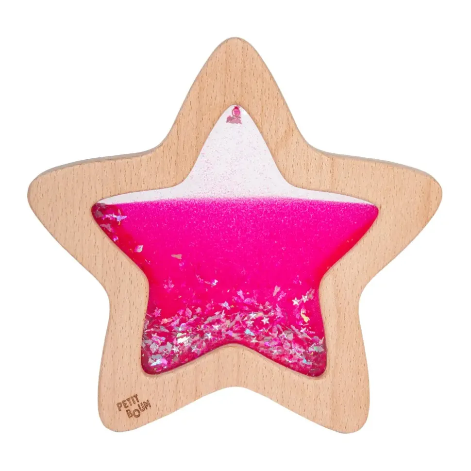 Estrellas para soñar. Llevamos un paso más allá el concepto de nuestras clásicas Float Bottles con esta estrella sensorial en vibrantes tonos rosados, que estimula el ejercicio de seguimiento ocular de los más pequeños y facilita un estado mental de calma y concentración. Además, si la cargas en luz natural o luz negra, nuestra Nébula Pink Star brilla en la oscuridad.