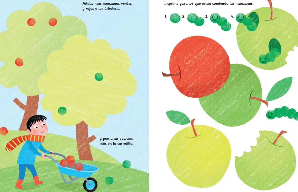 Con almohadillas de tinta de siete colores en la que mojar los dedos y muchísimas ideas explicadas paso a paso, los más pequeños podrán dar rienda suelta a su creatividad decorando preciosas escenas.