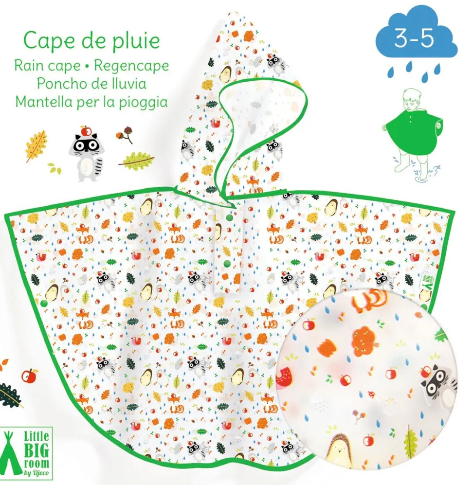 La capa impermeable de Djeco es el accesorio ideal para proteger a tu hijo de la lluvia y el viento. Fabricada con materiales de alta calidad, el poncho es ligero y cómodo, pero resistente y duradero para uso a largo plazo.