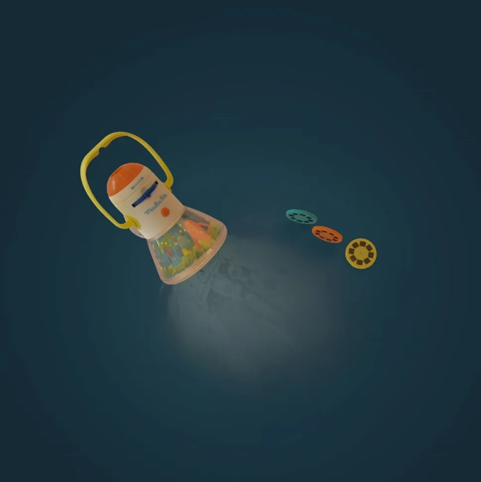 Descubre la linterna 3 en 1 que es un proyector de historias, proyector de luz nocturna. 32 imágenes para proyectar para desarrollar la imaginación y explicar historias preciosas . La función de luz nocturna finaliza a los 15 minutos.