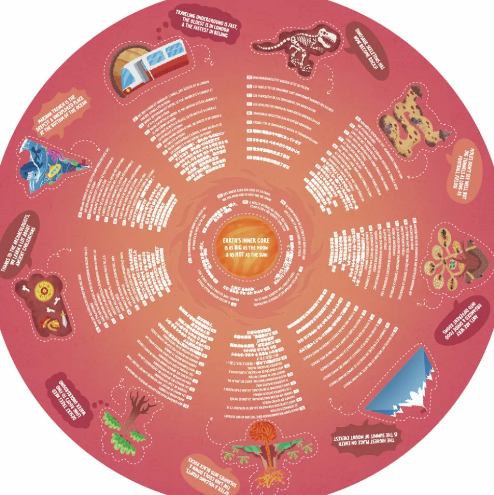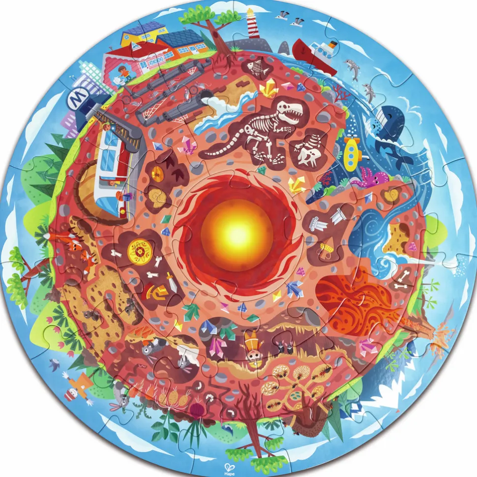 ¿Sabes cuántas cosas hay bajo tus pies? ¡Descubre cuántos animales y cosas hay bajo tierra en este increíble puzzle! Con un LED que representa el núcleo de la Tierra y un póster de doble cara, este puzzle de 36 piezas es perfecto para fomentar el amor por la geología y el mundo natural.