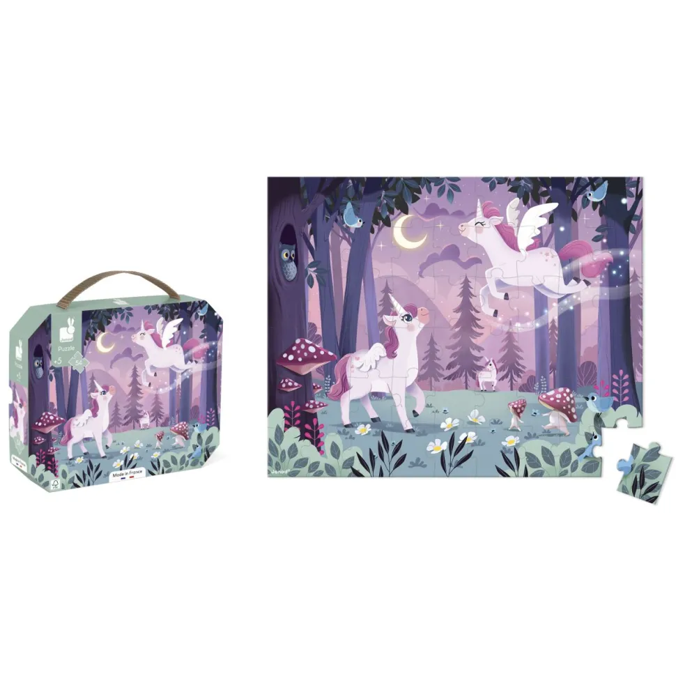 Ah, ¡los unicornios! Sumérgete en su mágico mundo con este puzzle ilustrado de 54 piezas, apto para niños a partir de 5 años. Este encantador puzzle de 50×40 cm sumerge a toda la familia en un bosque mágico lleno de fantásticas criaturitas, ¡donde los unicornios hacen su agosto! Las piezas se adaptan perfectamente a las pequeñas manos de los niños de 5 años, ayudando a desarrollar su motricidad fina y su lógica.