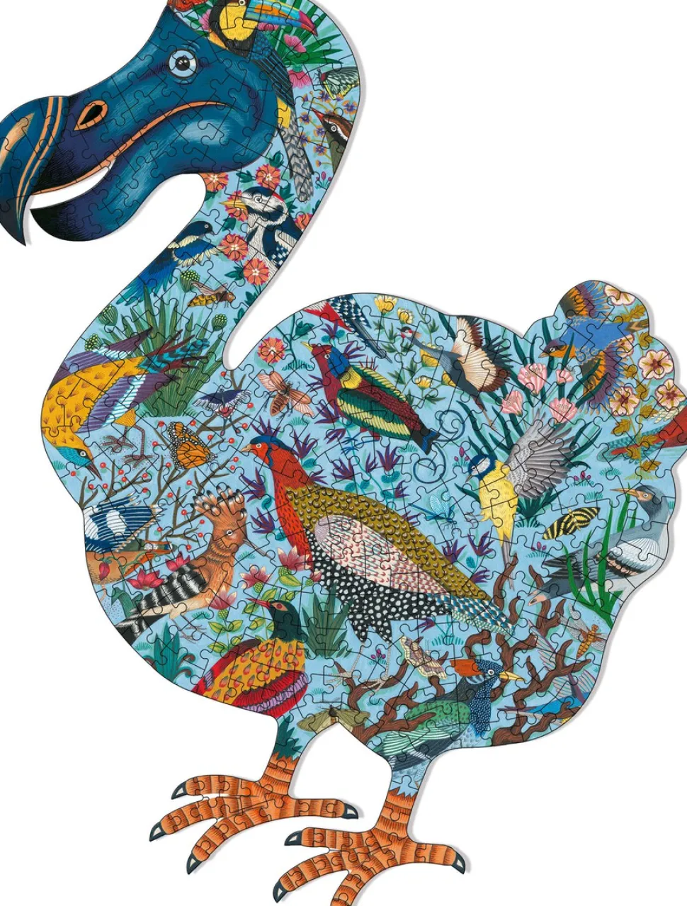 Puzz’Art Dodo es un puzle de 350 piezas. Gracias a su formato inédito, sin esquinas ni bordes, se derriban los códigos del arte del puzle. A través de esta gran silueta perforada, el niño descubre un pulpo en el que pulula un mundo imaginario. .