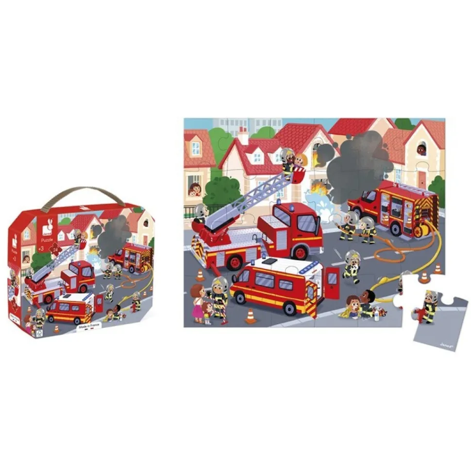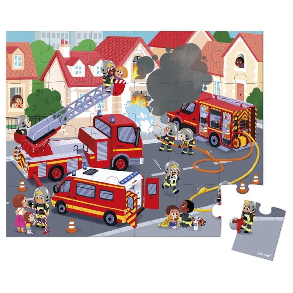 ¡Niinoo, niinoo! Los bomberos están en plena acción intentando apagar el incendio. Este precioso puzle de cartón de 24 piezas con un montón de detalles es ideal para los pequeños amantes de la aventura y de los bomberos. El niño ejercitará la memoria y la destreza con este bonito puzle de cartón de 24 piezas. Este puzle se transporta fácilmente gracias a su bonito maletín y a su asa de tela. Contiene un póster que sirve como modelo para los principiantes.