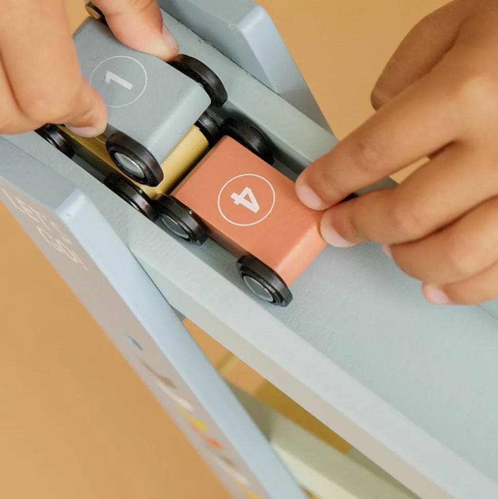 1, 2, 3 y ¡empieza! Con esta alegre rampa de carreras de madera que incluye 4 coches, tu pequeño se lo pasará en grande. Coloca los autos uno por uno en la parte superior de la pista de carreras, déjalos ir y correrán hacia abajo. ¡A los niños les encanta!