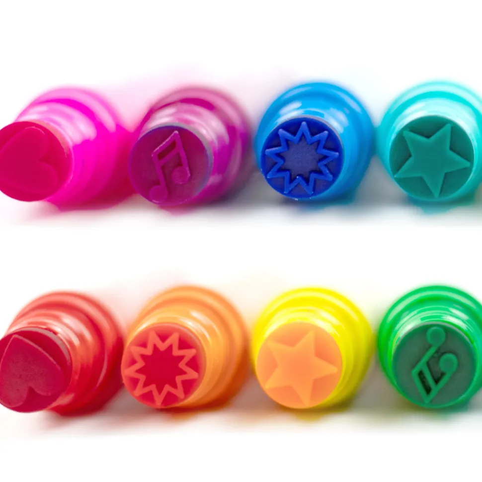 Los niños estarán en el paraíso de los sellos con estos divertidísimos marcadores Stamper. De doble cara, con un rotulador normal de punta redonda por un lado y un divertido sello con forma por el otro, a los niños les encantará estampar corazones, estrellas, notas musicales y estallidos de estrellas para subir de nivel sus obras de arte.