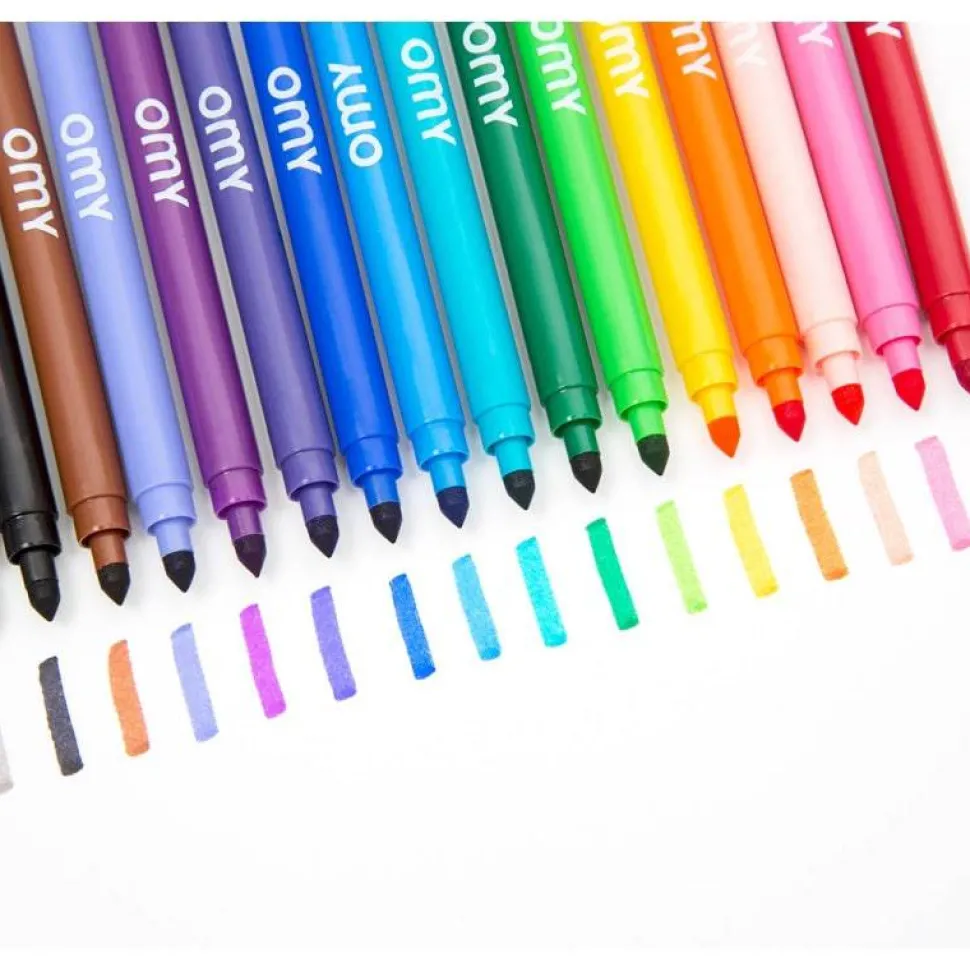 16 rotuladores de punta de fieltro ultra lavables.