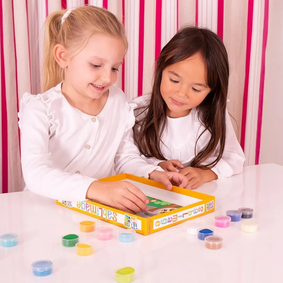 - Más de 15 tarritos de polvo de colores para que los niños puedan tener una amplia gama de colores a elegir.