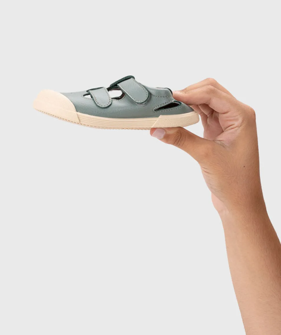Sandalia cangrejera de piel, de concepto barefoot medium, con la puntera mucho más ancha que en modelos anteriores, cero drop, flexible, blandita y plantilla extraíble. Lavar en agua fría no sin antes extraer la plantilla.