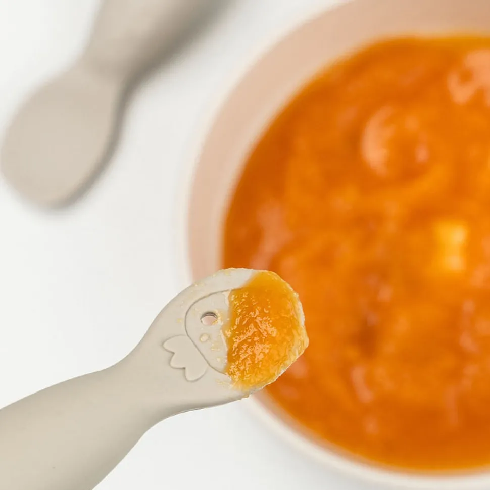 Set de dos cucharas de aprendizaje de silicona para cuando tu pequeño quiera empezar a comer solito.