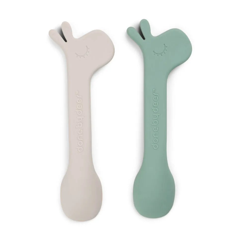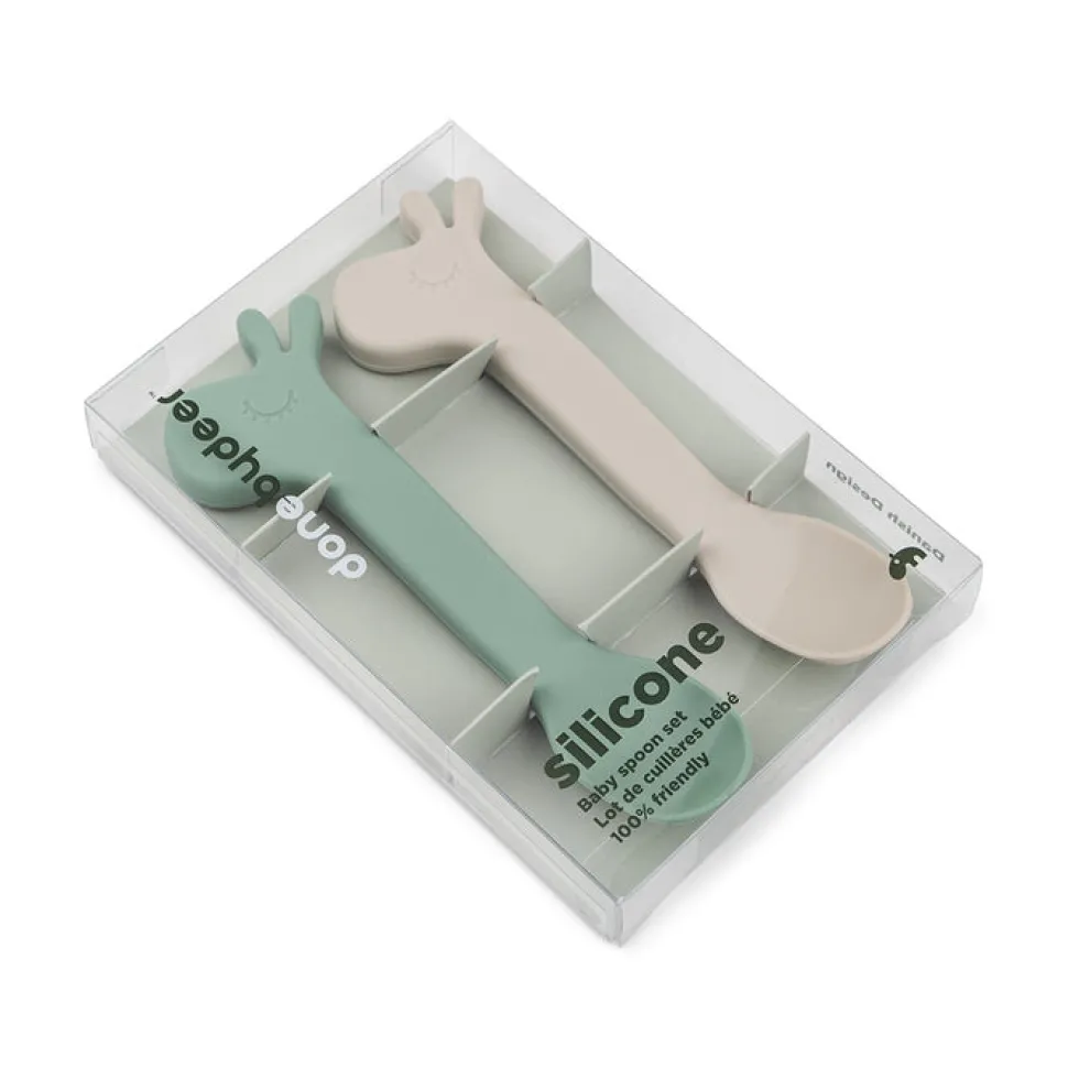 Set de dos cucharas de silicona para cuando tu pequeño quiera empezar a comer solito.
