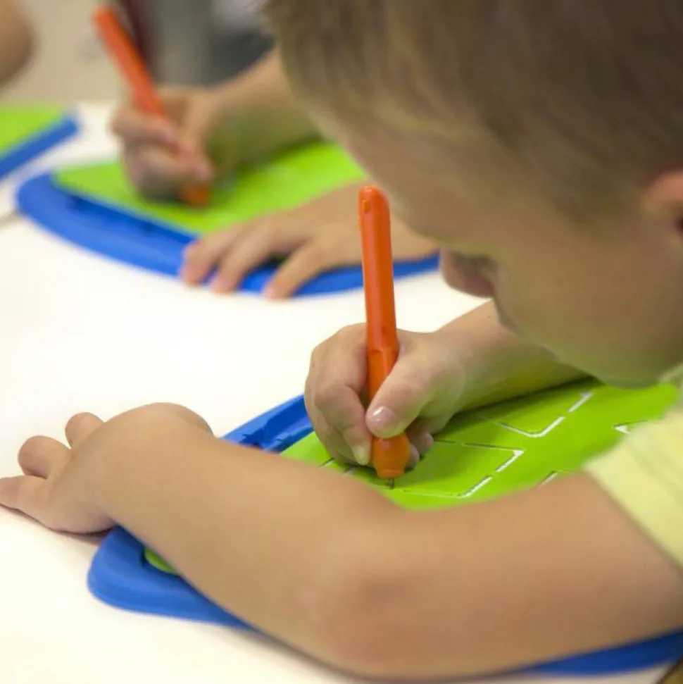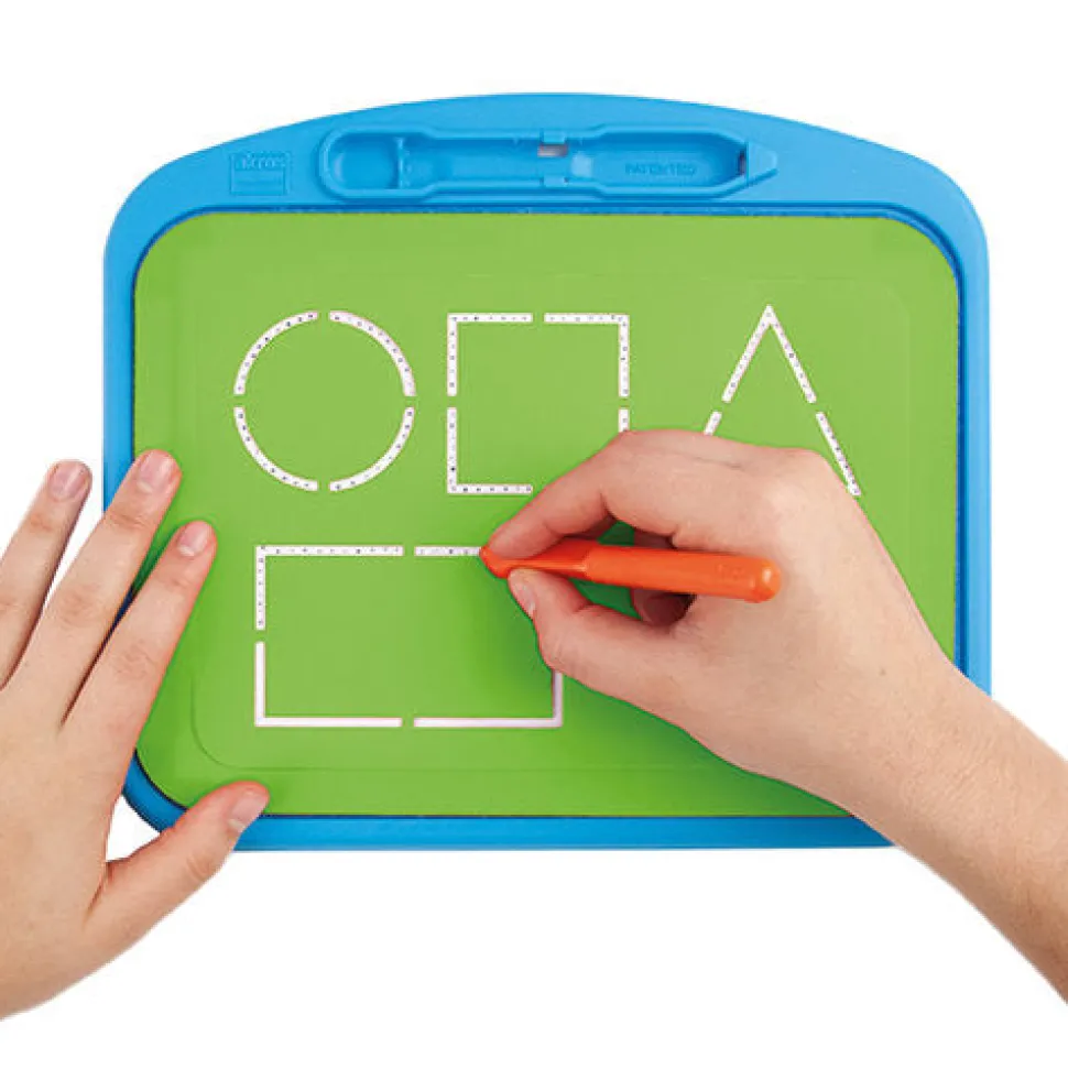Bandeja de picado con un marco de seguridad para sujetar el papel, y superficie de fieltro que no se desgasta. La base de la bandeja evita dañar la zona de trabajo. Con alojamiento para guardar el punzón ergonómico. Incluye plantilla modelo para iniciar en la preescritura.