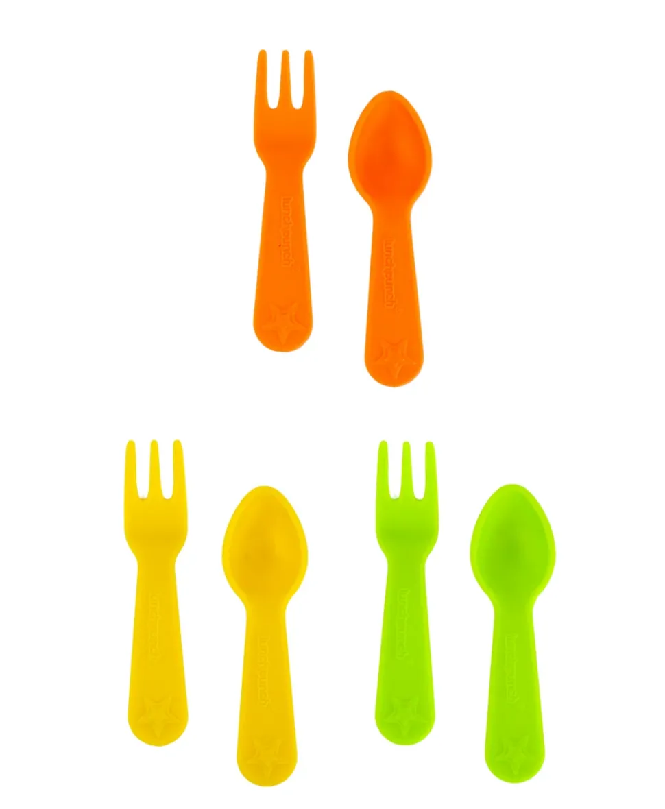 Este pack de 6 unidades incluye 3 tenedores y 3 cucharas es ideal para acompañar tu fiambrera, han sido diseñados para encajar perfectamente en las populares cajas de almuerzo bento y para darle un toque de color a los almuerzos, ¡sin complicaciones!