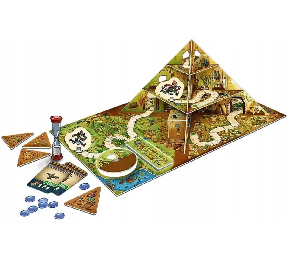 Spy Guy Pyramid es un juego de mesa para niños en el que jugarás como Spy Guy, un superdetective cuya fama ha llegado incluso a los reinos mágicos del multiverso. A petición de un reino mágico, tendrá que viajar a un mundo repleto de hechizos y criaturas mágicas para encontrar la guarida del poderoso dragón Balasar y recuperar sus pertenencias más valiosas.