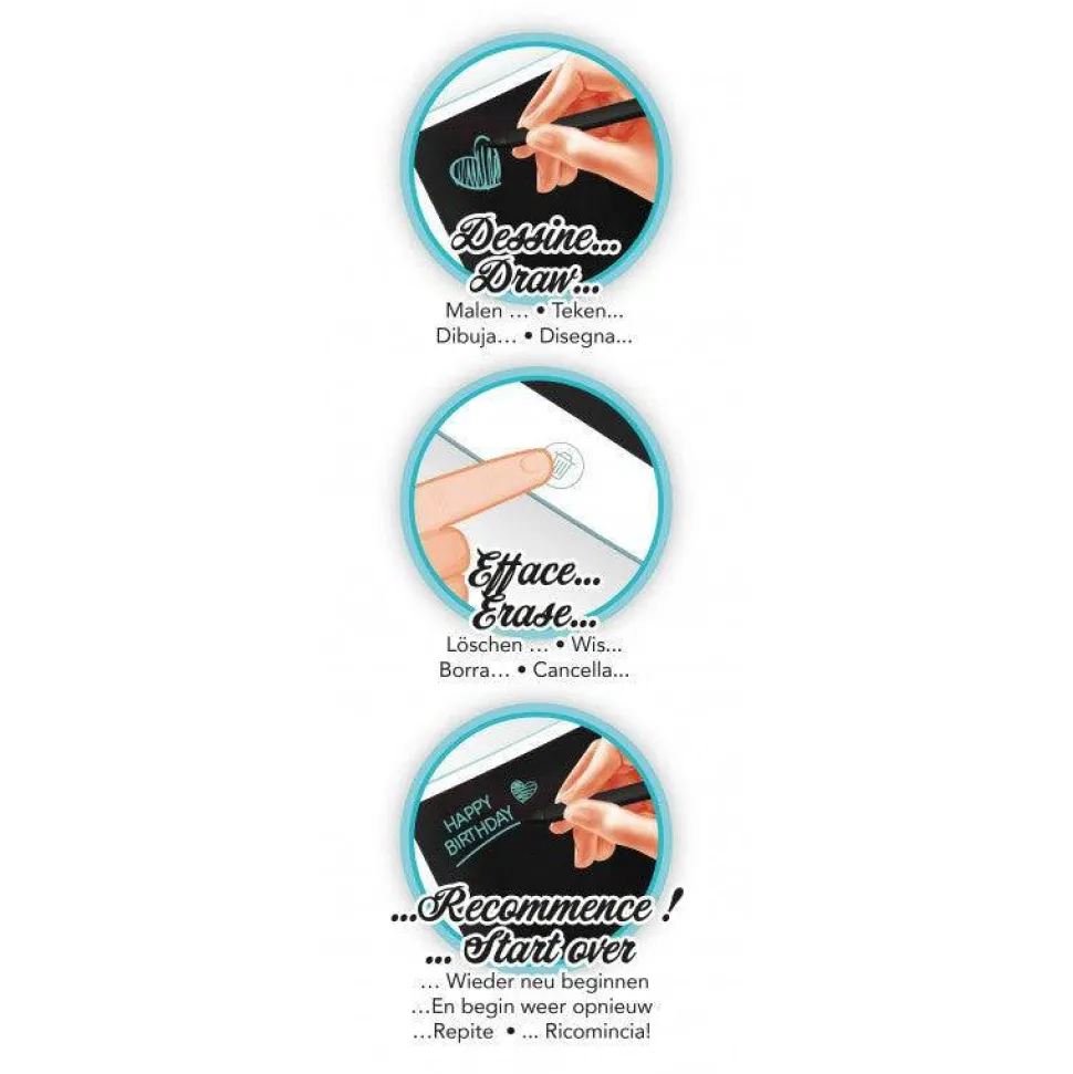 Utiliza tu tableta y tu puntero para dibujar y anotar todo lo que se te ocurra. Con el modo encendido, podrás dibujar y pulsar la tecla de borrar para que la imagen desaparezca y así comenzar de nuevo; si prefieres mantenerla intacta, elige el modo bloqueo para más seguridad. Los trazos son claros y muy vistosos, y animan a dibujar y dibujar sin descanso. ¡Alucina con el resultado!