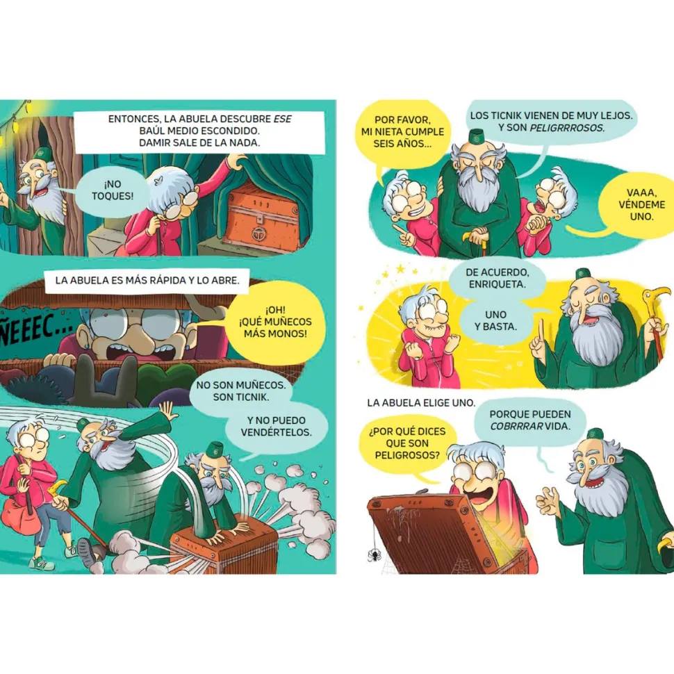 En la tienda de Damir hay un baúl escondido, lleno de muñecos. Son unos peluches tan monos que la abuela Enriqueta ha querido regalar uno a Tina, su nieta. Sin embargo, el muñeco esconde algunas sorpresas… Hay que seguir tres normas para que todo vaya bien. ¿Y si la niña olvida las normas?