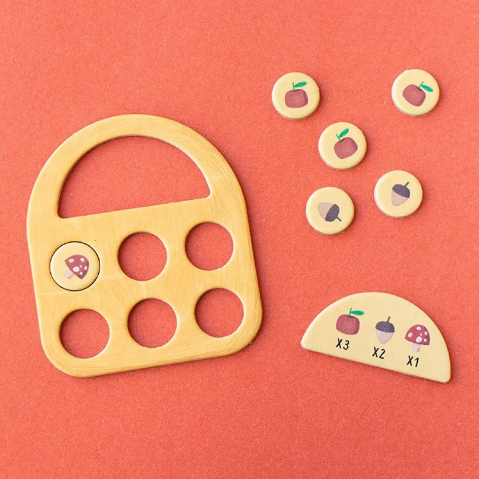 Un juego de observación pequeño para llevar de viaje. De cartón y madera. Juego sostenible y de proximidad.