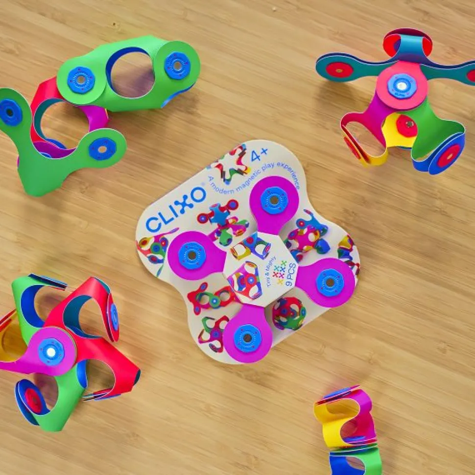 Contiene 9 piezas de la característica forma Quad de CLIXO para realizar más de 100 ocurrentes creaciones magnéticas.
