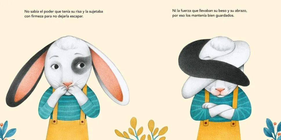 Valeria es una pequeña conejita que le encanta aprender e ir a la escuela. Se lo pasa en grande contando con todos los dedos de su mano y decir en voz alta los nombres de los colores que conforman el arcoíris. Sin embargo, Valeria es muy muy tímida y por eso intenta llamar la atención lo menos posible y hablar bajito para que no la oigan. No sabía el poder que tenía su risa y la sujetaba con firmeza para no dejarla escapar, ni tampoco conocía la fuerza que llevaban su beso y su abrazo, por eso los mantenía bien guardados.