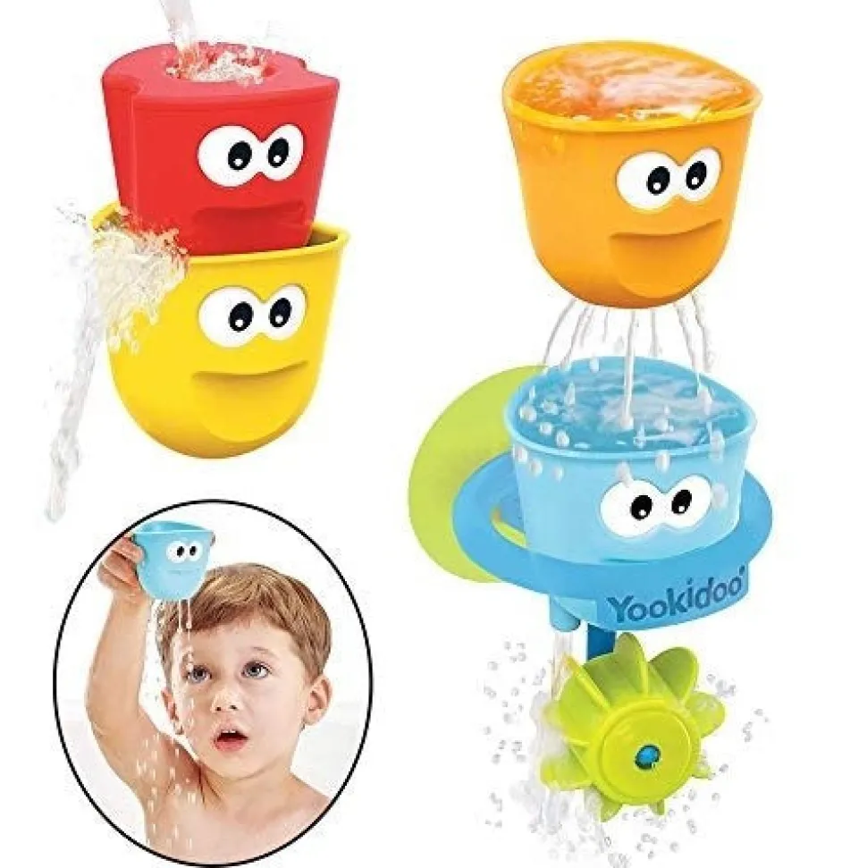 3 vasitos intercambiables, cada uno con un efecto de agua diferente. El portavasos se adhiere a la bañera para jugar, apilar los vasitos y tenerlos recogidos. ¡Diferente efecto de agua en cada taza!