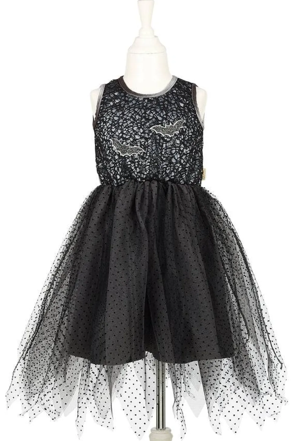 ¿Qué es eso que escuchamos? ¡Es la pequeña bruja Mathilde volando en su escoba! Para las festividades de Halloween de esta noche, Mathilde se puso su vestido de bruja más hermoso. ¡Mathilde se adentra en la noche oscura con sus leales amigos murciélagos, de camino a la fiesta de Halloween! El vestido de bruja está fabricado en 100% poliéster.