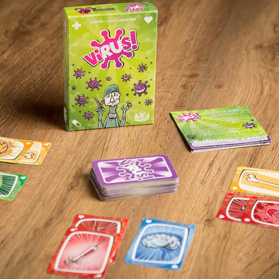 Virus es por derecho propio uno de los juegos de cartas más recomendados y más vendidos en nuestro país. Mires donde mires ves a niñas, niños y adultos jugado a Virus, ya sea en el parque, la piscina, el recreo…