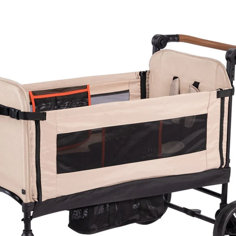La mejor solución para un transporte versatil. El wagon de Yvolution sirve para múltiples fines. Es capaz de transportar dos niños a la vez, presentando dos sets con arneses de 5 puntos y respaldo acolchado para que viajen cómodos. La compra de mamá y papá puede cargarse como si fuera un carrito de la compra y se dirige como si lo fuera. Las ruedas delanteras giran 360 grados para un manejo fácil mientras que las ruedas traseras llevan un freno de pie. Lleva un barra y ángulo ajustable. Apto a partir de 12 meses, su peso es de 10,8 kg.