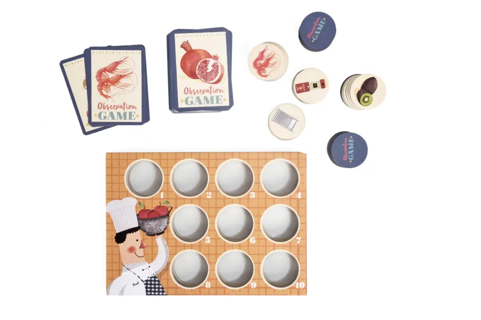 Un juego de observación y rapidez del mundo de la cocina. Un juego para toda la familia, diseñado y fabricado con mucho cariño en Barcelona. A partir de los 3 años.