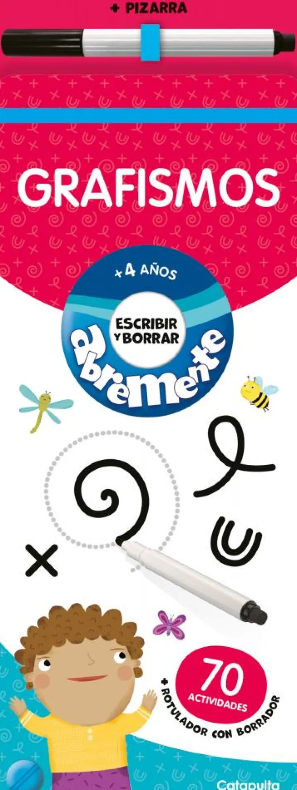 Una nueva colección de libros para niños y niñas de 3 a 6 años con actividades y un rotulador con borrador para entrar en el mundo de la lectoescritura. Propuestas originales para identificar y trazar garabatos, dibujos, letras, números, grafismos y formas y aprender a practicarlos con soltura una y otra vez. Propuestas creativas para divertirse y compartir, jugando con actividades que fomentan la lectoescritura. Incluye: Una pizarra Elástico de cierre Contornos con relieve para recorrer los trazados con los dedos Personajes que acompañan el recorrido del libro y las actividades Un rotulador con borrador que permite escribir y borrar en estas páginas una y otra vez